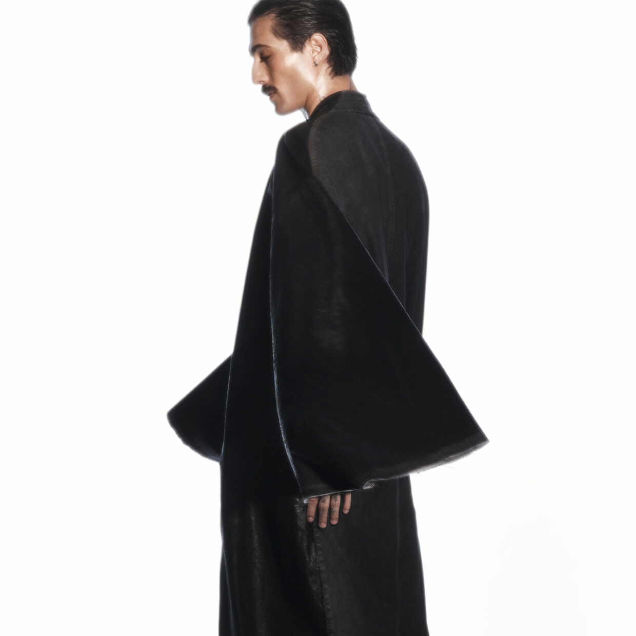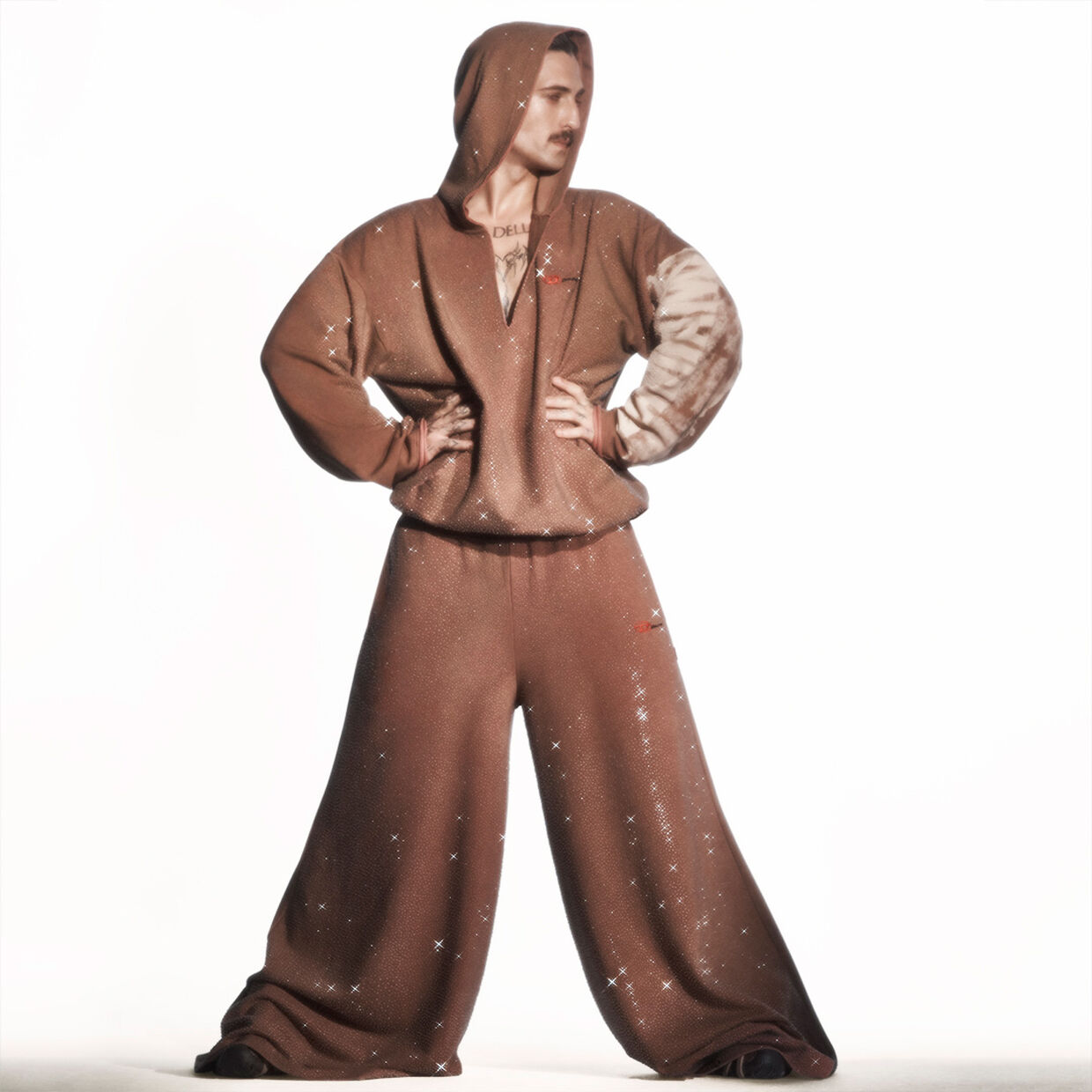 Die Kapselkollektion wird von Glenn Martens geleitet und umfasst alle charakteristischen Säulen der Marke. Die wichtigsten Runway-Looks werden in übertriebenen Proportionen neu interpretiert. Burnout Jersey-Tops und ultrabreite Hosen mit Kordelzug, auf denen das Wort „Damiano“ in der charakteristischen Diesel-Schrift prangt, sehen aus, als wären sie mit einer Lötlampe gestrahlt worden.